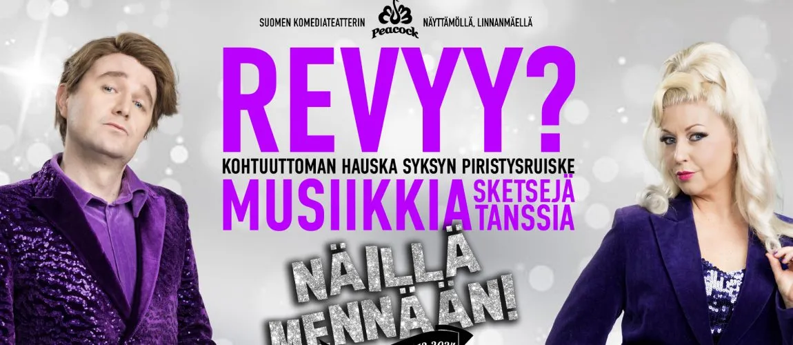 Suomen Komediateatteri on viihdyttänyt ja naurattanut Suomen kansaa revyillään jo lähes 30 vuoden ajan. Mutta mikä tarkalleen on revyy? Suomen Komediateatterin taiteellinen johtaja Kiti Kokkonen avaa revyyn saloja ja kertoo, miksi tämän syksyn Näillä mennään -revyytä ei kannata jättää väliin.