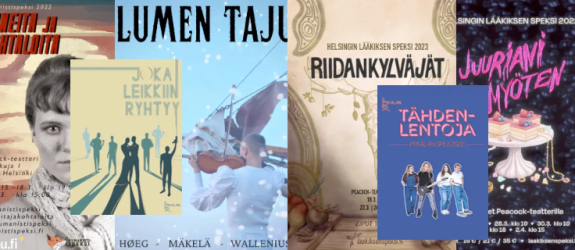 Kaikki mitä koet, on opiskelijavoimin luotua. Jokaisen speksin taustalla on valtava määrä opiskelijoita mm. tiedekuntien eri ainejärjestöistä.